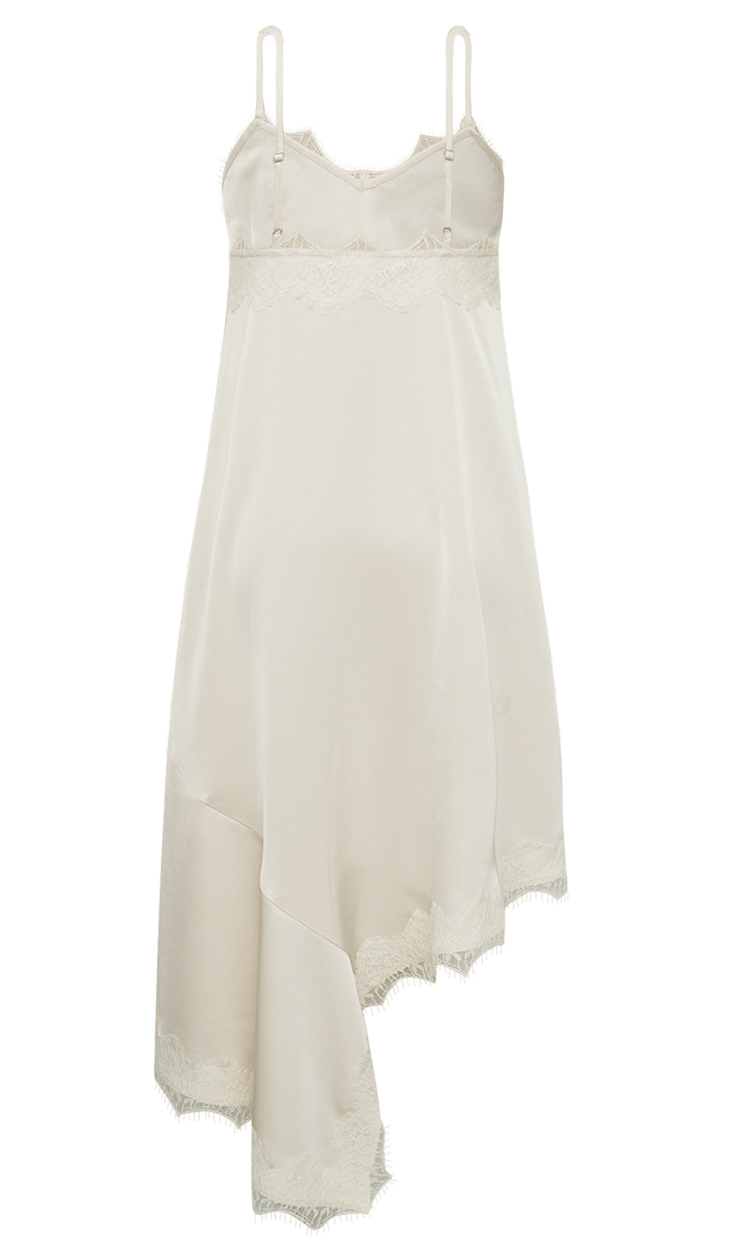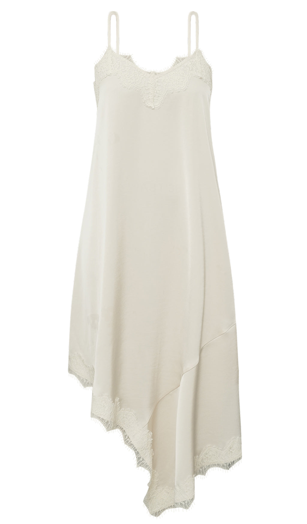 Lækker lang kjole i kraftig polyester satin, der falder elegant og giver et luksuriøst udtryk. Den eksklusive blonde og den flotte skrå detalje tilfører kjolen et helt særligt og sofistikeret finish.