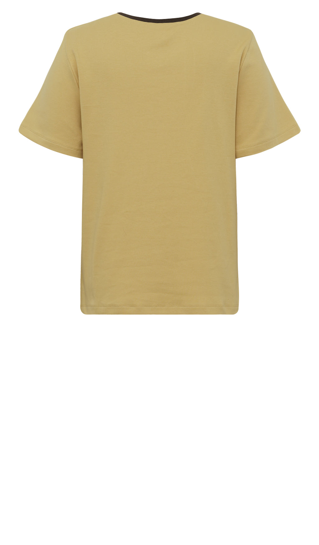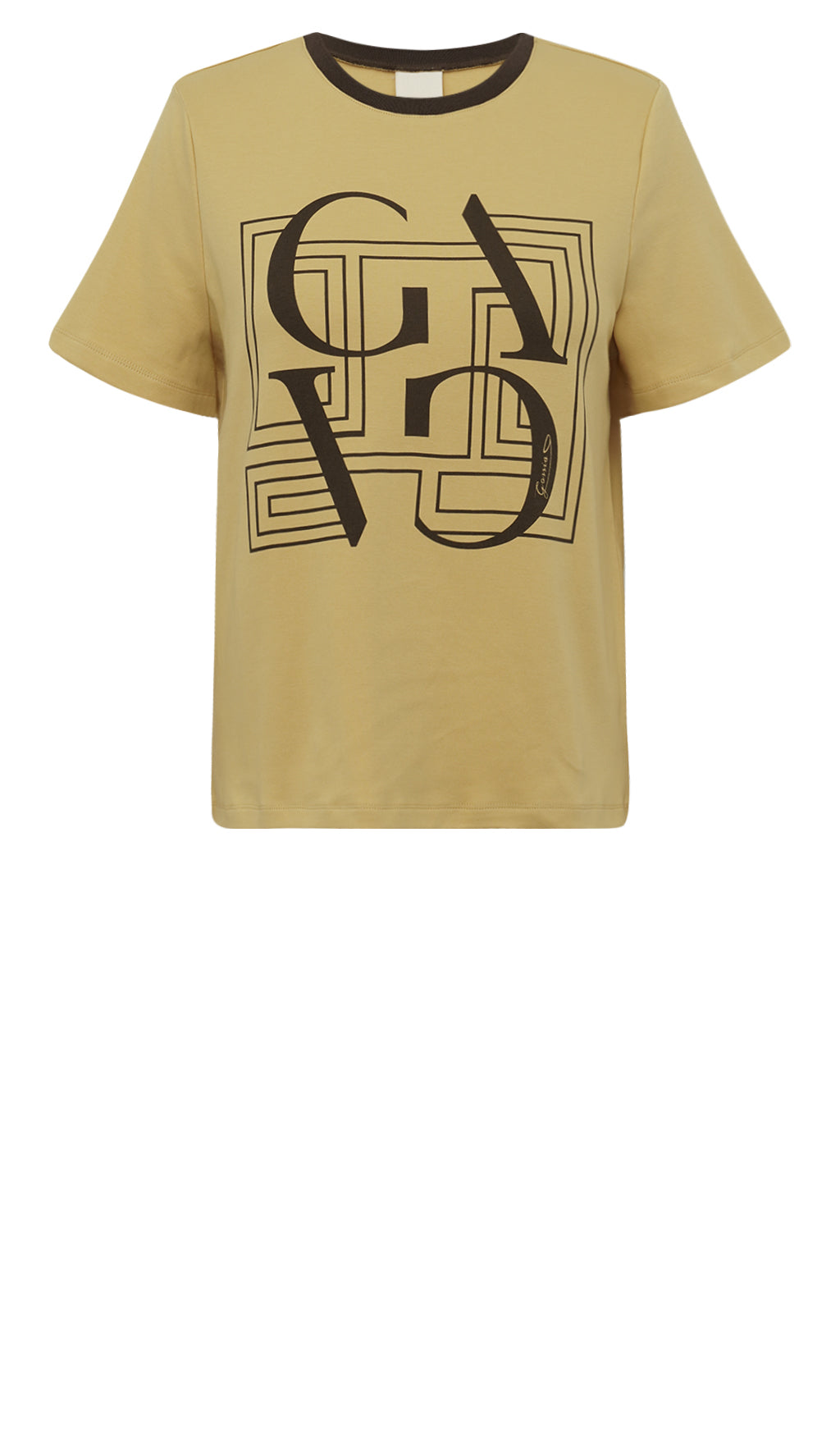 Super lækker T-shirt i blød bomuldskvalitet med et strejf af elasthan, der sikrer, at formen holder sig flot vask efter vask. Forsynet med et stort grafisk frontprint, hvor farven elegant går igen i halsribben for et cool og gennemført look.