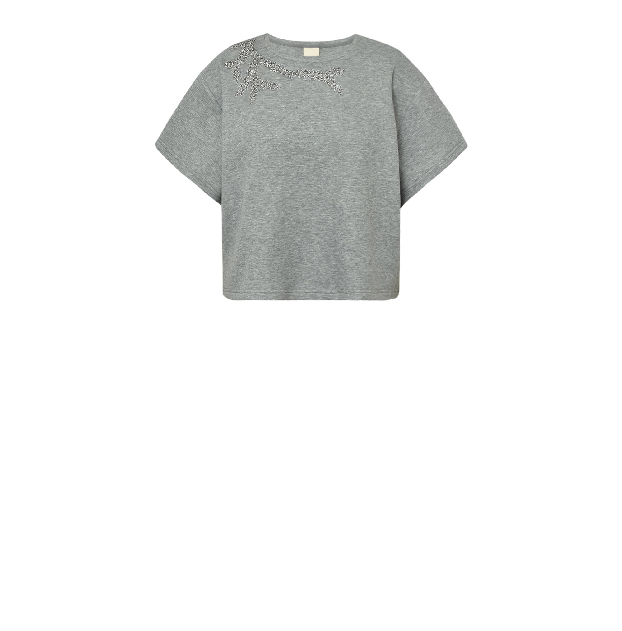 Cool bomber-inspireret sweat med korte ærmer og feminin simili-dekoration ved halsen, der tilfører et unikt og elegant twist til den sporty stil. En komfortabel og stilfuld style, der passer til mange lejligheder.