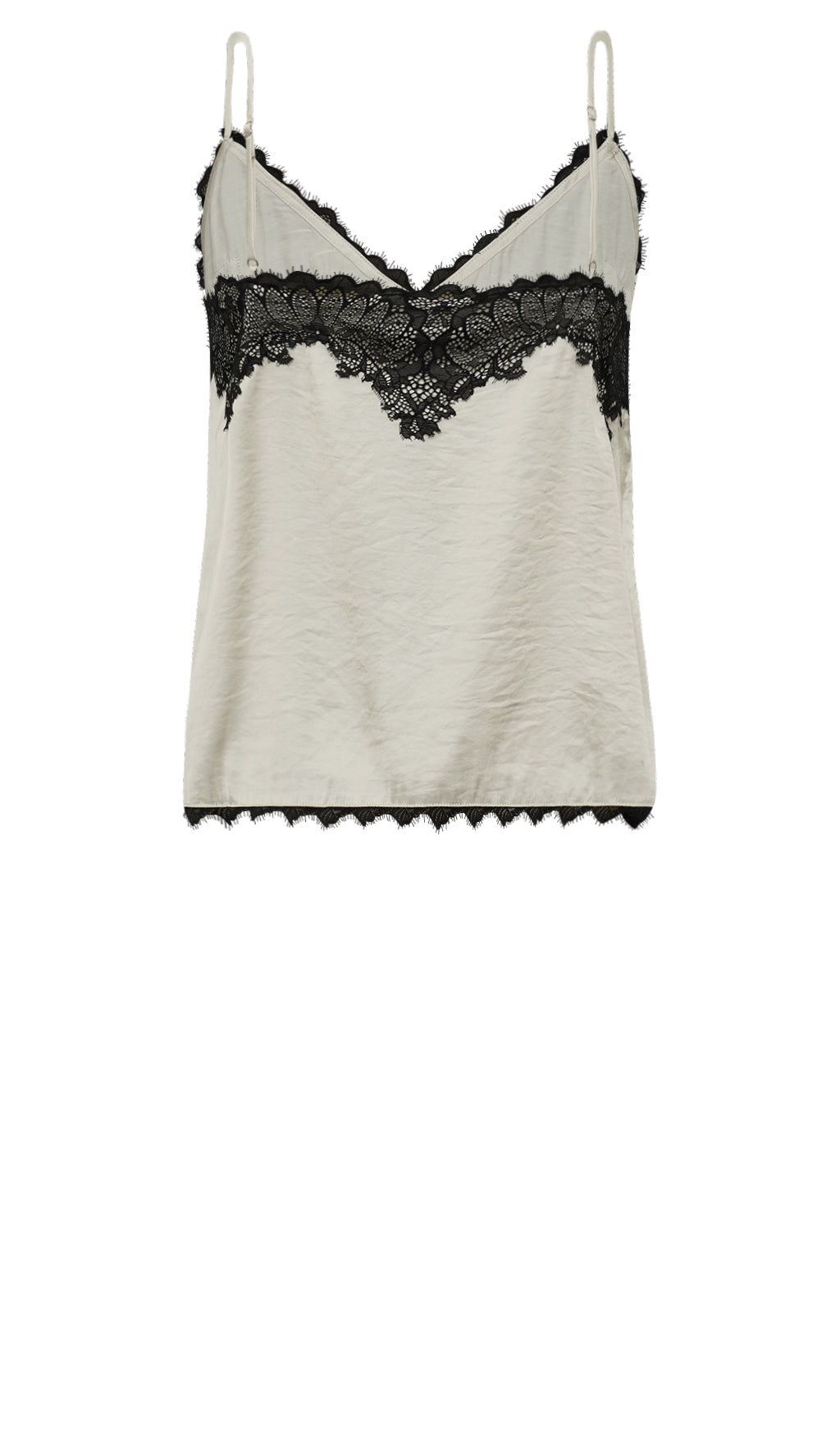 ZessaliGO Top er en smuk top i lækker, blød satin kvalitet, der falder flot og føles behagelig mod huden. Den fine kontrastblonde tilfører et eksklusivt og feminint udtryk, mens de justerbare stropper gør toppen nem at tilpasse for optimal pasform og komfort. En elegant top, der kan styles både til hverdag og fest.