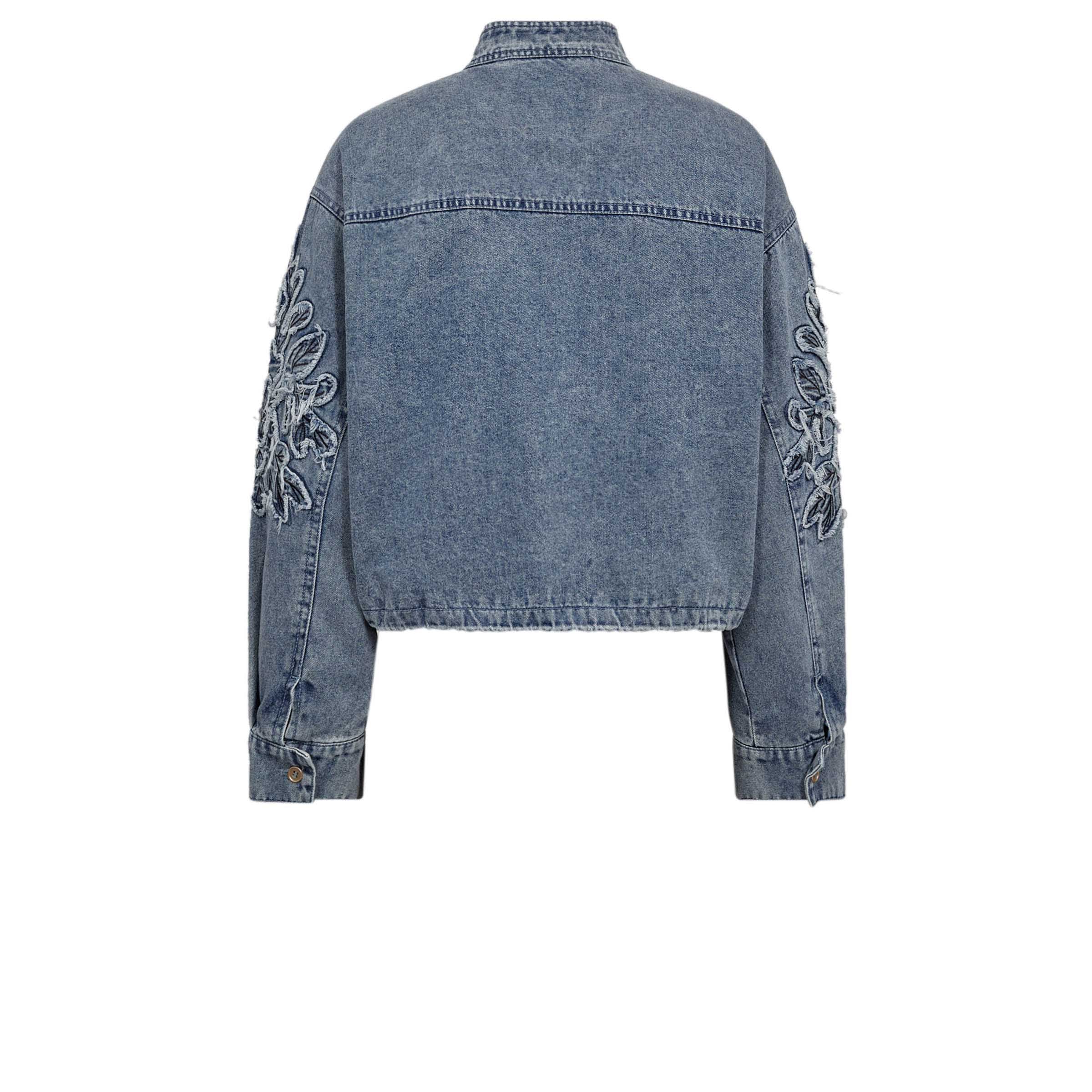 Skøn kort denimjakke med rummelig vidde og smukt broderi på ærmerne, der giver et feminint og unikt twist til den klassiske denimjakke.