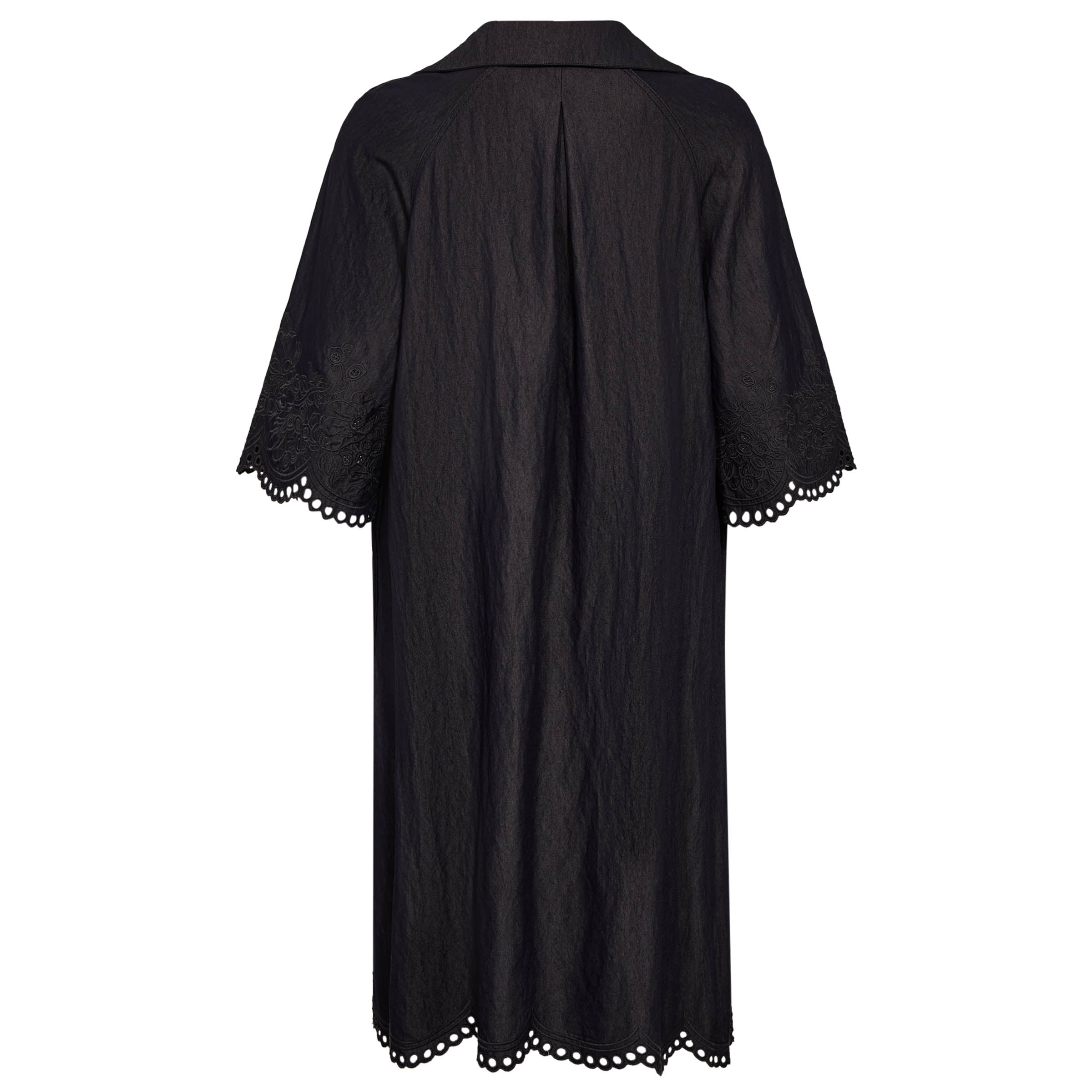 MerleGO Dress er en elegant kjole med fine blondekanter ved både ærmer og bund, som tilfører et feminint og raffineret udtryk. Den enkle, fine krave afsluttes i en flot V-hals der giver et eksklusivt og stilfuldt finish. En tidløs kjole, der nemt kan styles til både hverdag og fest.