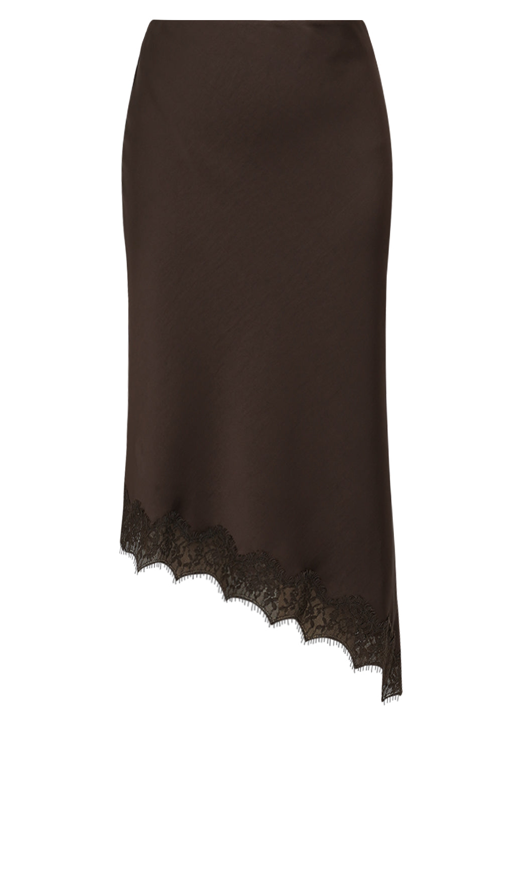 Luxurious long skirt in heavy polyester satin, which falls elegantly and gives a luxurious expression. The exclusive lace and the beautiful diagonal detail add a very special and sophisticated finish to the skirt.